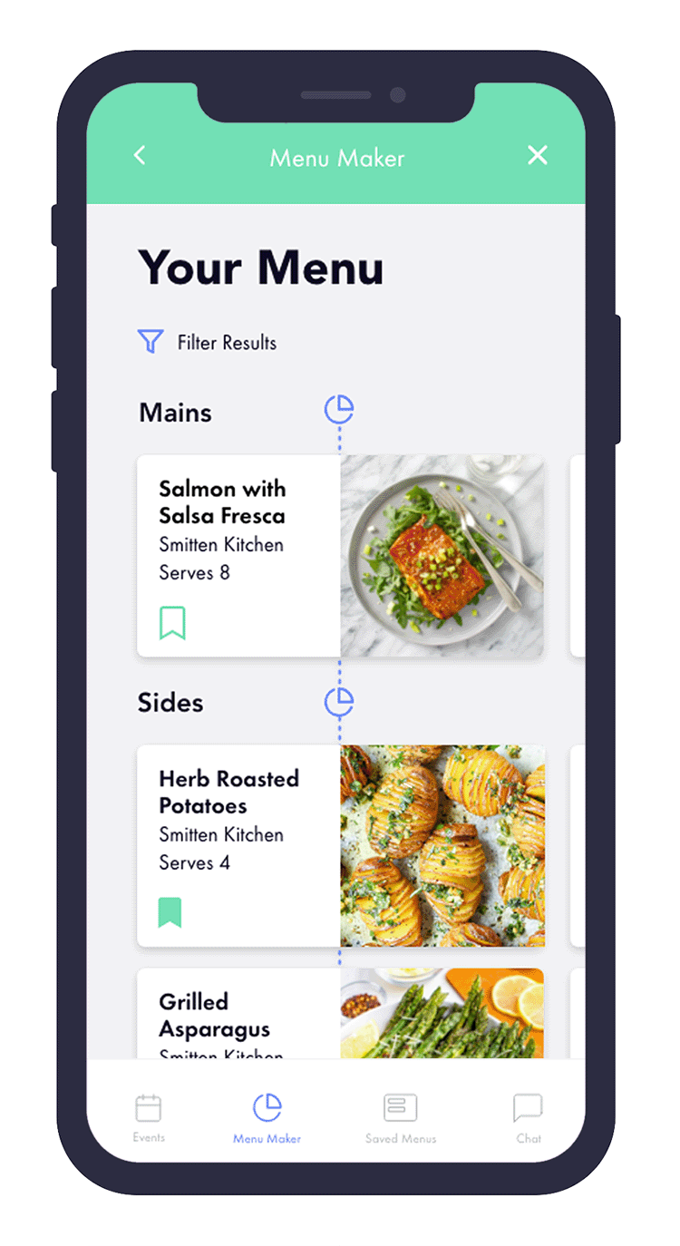 Dinner Party makes it easy to collaborate on meal planning for holiday gatherings, dinner parties, lunch clubs, and more. Create an event, invite guests, and use the Menu Maker to inspire your menu. Mix and match recipes to share with your guests or let them decide what to bring.
