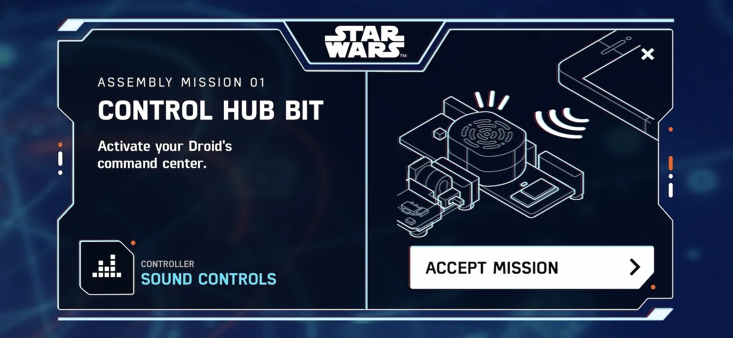 Base Assembly is required onboarding that guides kids through building their first droid. This phase is broken up into milestones, providing quick wins along the way.